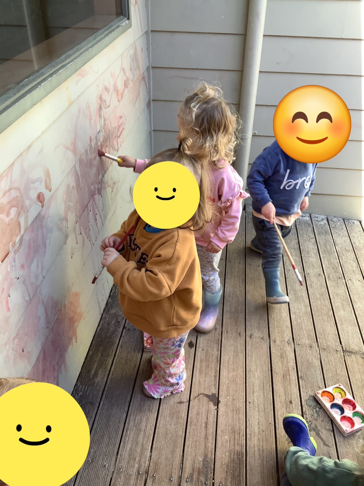 During the painting process, I facilitated their exploration, encouraging individual expression. I valued their contributions and invited them to share their thoughts and feelings, fostering an environment where creativity could flourish through their art. I intended to ignite their curiosity about the world and showcase the beauty of our diverse community (learninghub, n.d.). To strengthen connections with families, I initiated conversations about the textures and colours the children explored at home. The families reacted positively, especially enjoying the idea of painting on the walls. This initiative reflects our diverse community and highlights the children’s creativity. The outdoor painting activity was a joyful experience that allowed the children to interact with texture and colour while deepening their connection to nature. While they may not yet fully understand the intricacies of Aboriginal culture, this experience nurtured their creativity and curiosity, laying the foundation for future respect and appreciation of diversity. I am excited about the potential for future activities that will further explore sensory experiences alongside cultural insights, enriching our community and enhancing the children’s learning journey (learninghub, n.d.).
