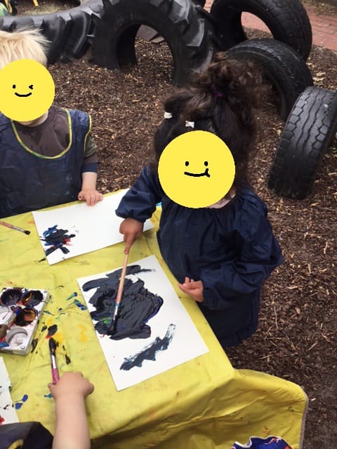 After our reading session, I organized an outdoor painting activity where I encouraged the children to share what they observed in nature. One by one, they expressed what they saw: a chicken, a tree, a bird, a flower, the sandpit, and a bike. This prompted an enriching discussion about the environment and the different elements that make up the Gagudju country. The children then painted what they saw around them, bringing their observations into art(Gowrie, 2021).